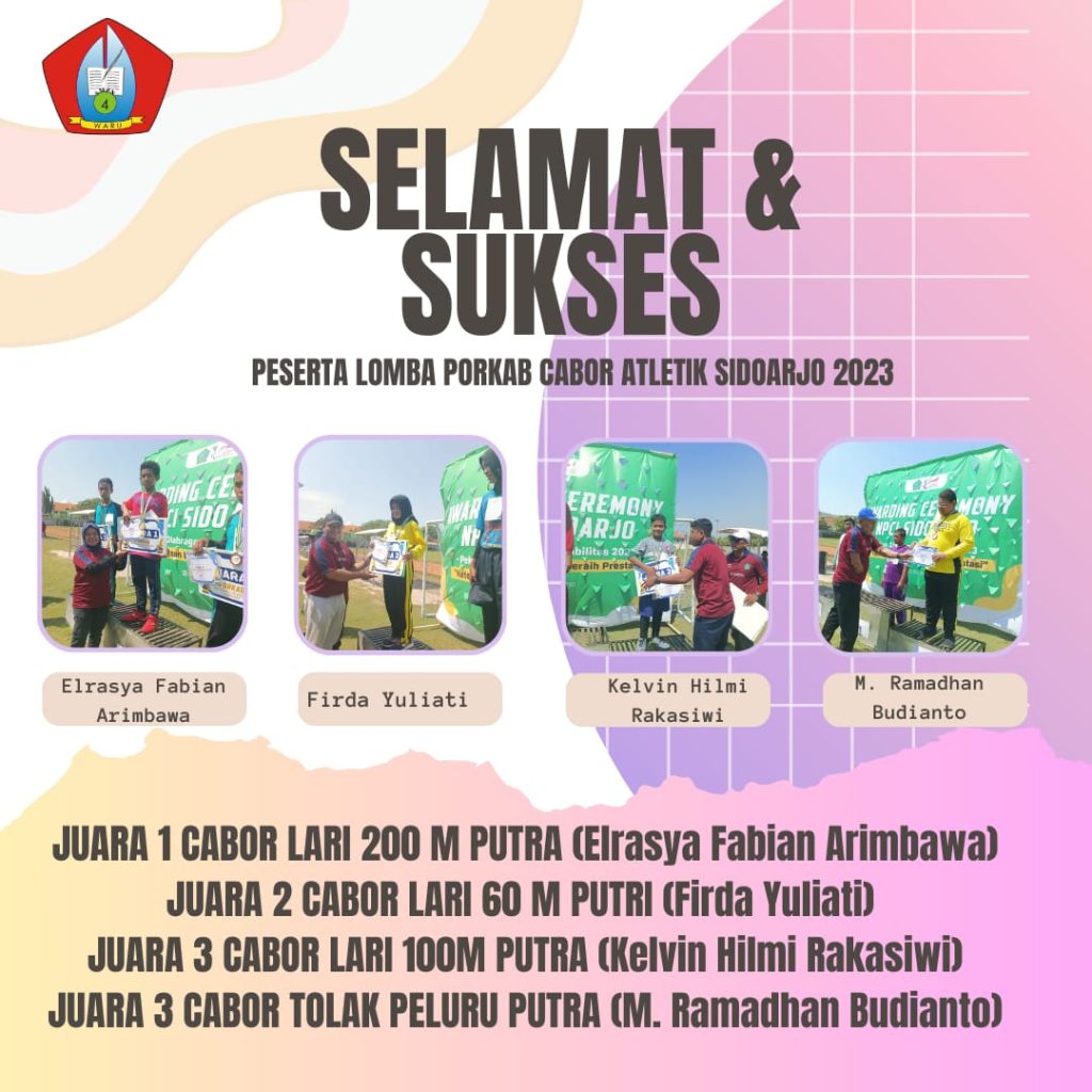 prestasi Juara Lomba Porkab Cabor Atletik Sidoarjo 2023 admin 26 Agustus 2023 Post navigation Previous Previous post: Perwakilan Jambore Pramuka Se-Provinsi JatimNext Next post: Juara Jambore PK-LK & ABK Berkarya Tinggalkan Balasan Batalkan balasanAlamat email Anda tidak akan dipublikasikan. Ruas yang wajib ditandai *Komentar * Nama * Email * Situs Web Simpan nama, email, dan situs web saya pada peramban ini untuk komentar saya berikutnya. Related News Pramuka Kalpataru Rebut Juara Umum ke-3 Lomba Penggalang Terampil Tingkat Kab. Sidoarjo tahun 2024 Pramuka Kalpataru Rebut Juara Umum ke-3 Lomba Penggalang Terampil Tingkat Kab. Sidoarjo tahun 2024 Daftar Pemenang Lomba Bulan Oktober Daftar Pemenang Lomba Bulan Oktober Kumpulan Video Lomba Festival Literasi Digital Sidoarjo 2023 Kumpulan Video Lomba Festival Literasi Digital Sidoarjo 2023 Juara Jambore PK-LK & ABK Berkarya Juara Jambore PK-LK & ABK Berkarya