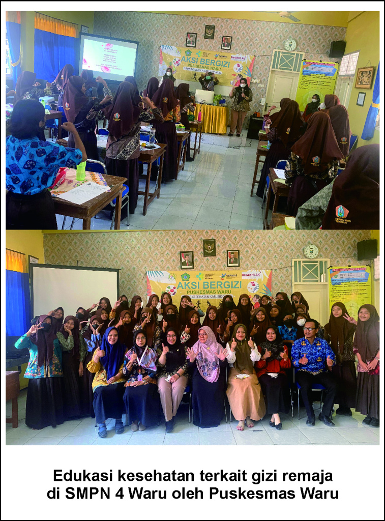 Acara ini juga diisi dengan edukasi kesehatan terkait gizi remaja yang dihadirkan oleh narasumber dari Tenaga Kesehatan Puskesmas Waru. Narasumber menyampaikan materi yang sangat informatif mengenai pentingnya asupan gizi seimbang, kebiasaan makan sehat, dan bagaimana pola hidup yang baik dapat mempengaruhi kesehatan secara keseluruhan. Siswa-siswa terlihat aktif bertanya dan berdiskusi, menunjukkan minat yang tinggi terhadap topik yang disampaikan.