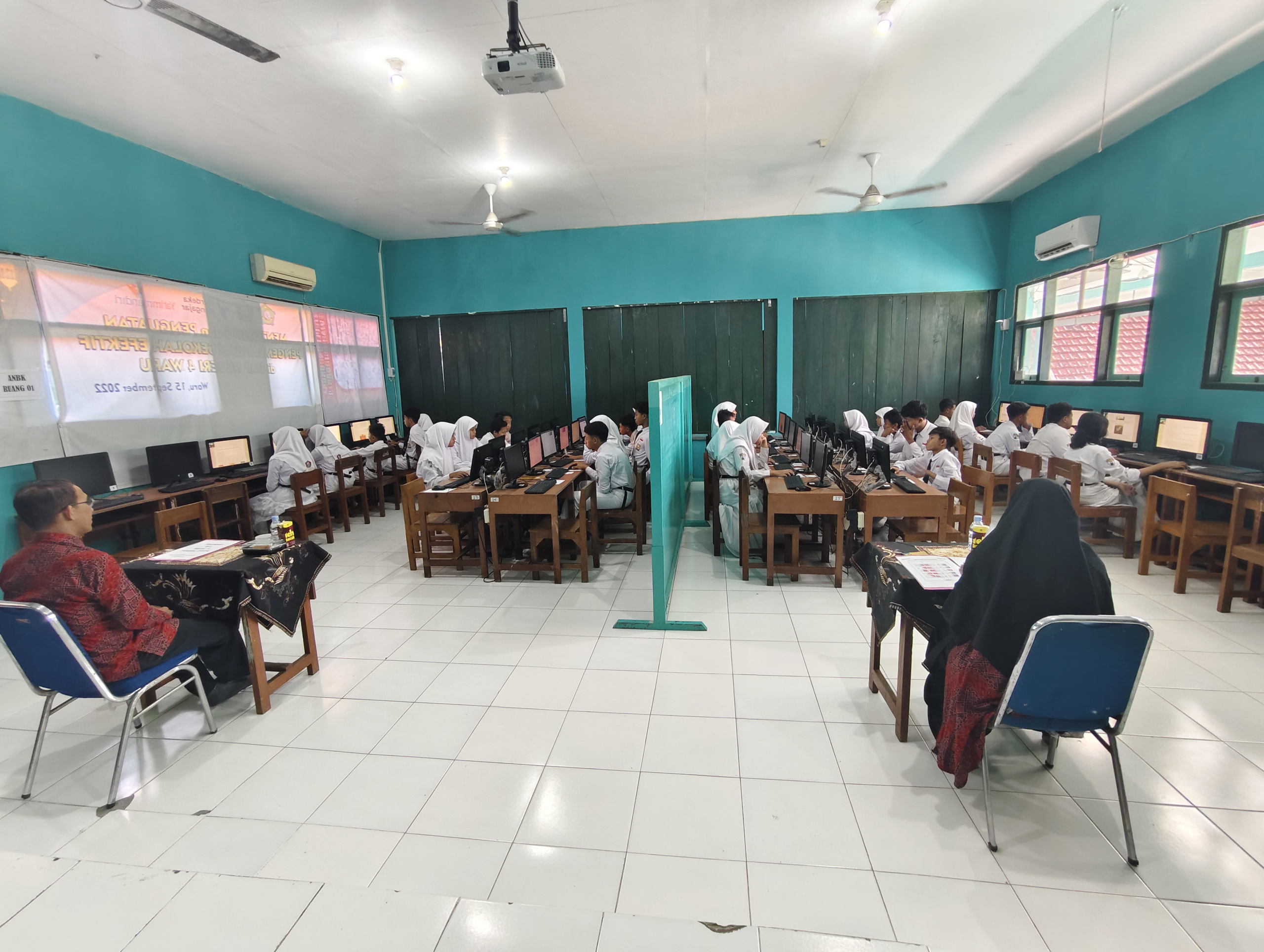 SMP Negeri 4 Waru menyelenggarakan Asesmen Nasional Berbasis Komputer (ANBK) pada tanggal 9-10 September 2024. ANBK adalah program evaluasi yang diadakan oleh Kementerian Pendidikan, Kebudayaan, Riset, dan Teknologi (Kemendikbudristek) yang bertujuan untuk mengukur kemampuan siswa dalam tiga aspek utama, yaitu literasi, numerasi, serta survei karakter dan lingkungan belajar.