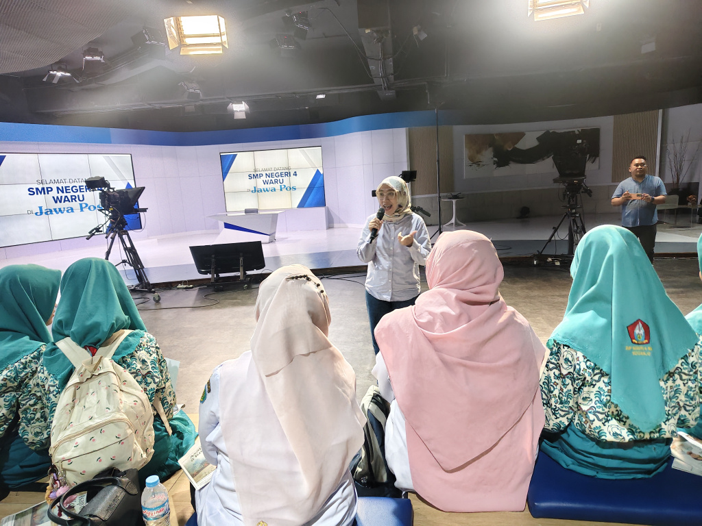 Sebagai penutup kegiatan, siswa mendapat kesempatan langka untuk menyaksikan liputan berita secara langsung di studio JTV, salah satu stasiun televisi yang berada di bawah naungan Jawa Pos Group. Mereka menyaksikan proses siaran langsung oleh presenter JTV, mulai dari persiapan naskah berita, penggunaan alat prompter, hingga teknik penyampaian berita di depan kamera.