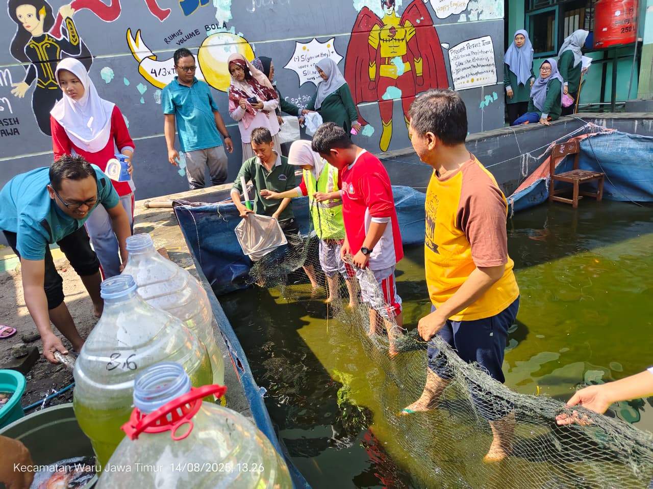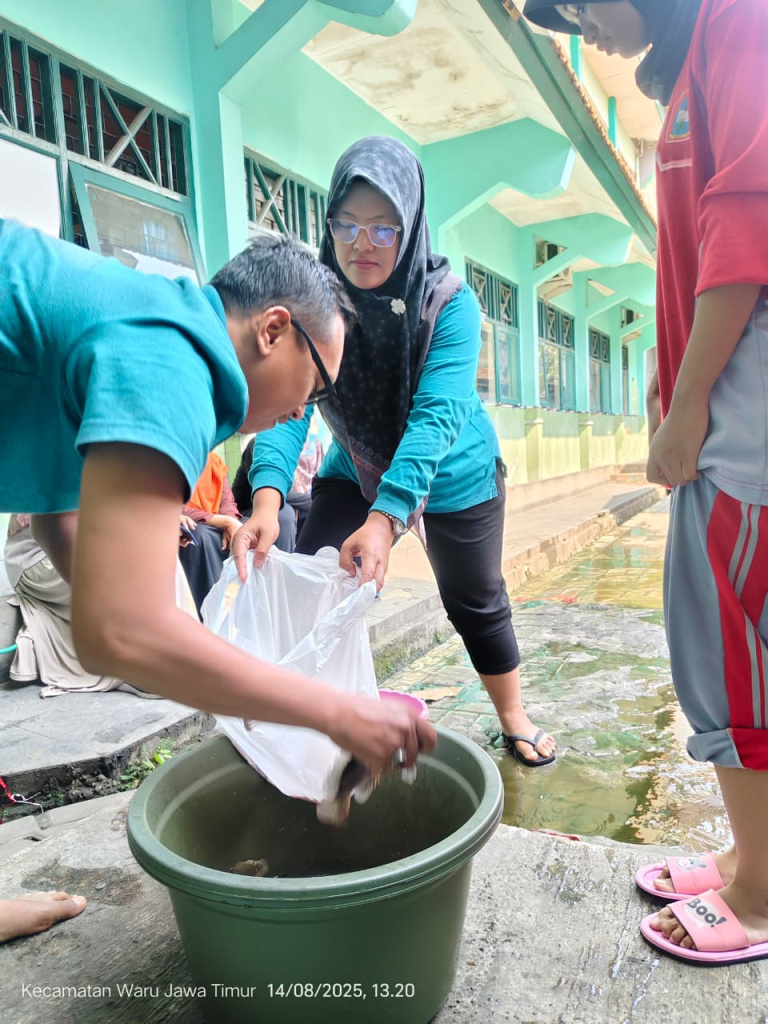 17 Agustus 2025 Tim Pokja Konservasi Air melakukan panen ikan Nila di kolam budidaya di Spenpatru kamis siang. Hal ini adalah bentuk komitmen sebagai sekolah peduli lingkungan. Pembudidayaan Ikan Nila adalah salah satu program yang diunggulkan oleh tim Pokja Konservasi Air. Panen ikan Nilai ini dilaksanakan oleh kader Adiwiyata dari kelas 9 serta guru-guru yang ada di SMP Negeri 4 Waru. Proses pemanenan sendiri diawali dengan menguras air di dalam kolam hingga tersisa sekitar 30 persen dari total volume air, kemudian dilakukan penjaringan untuk dipindahkan ke dalam bak khusus hingga Ikan benar-benar habis.